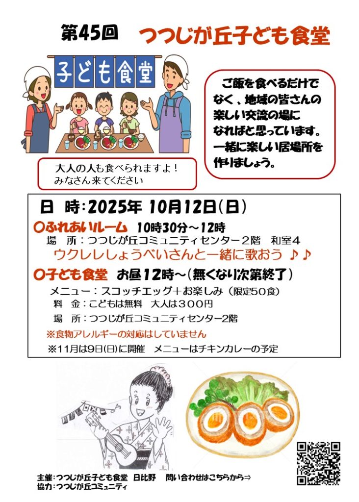 お昼ご飯はスコッチエッグ、ふれあいルームはウクレレしょうべいさんと一緒に歌いましょう♪♪