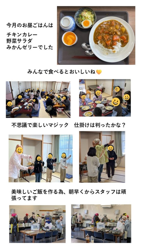 3月は60名を超えるお客さんに来ていただき、スタッフの食事が無くなってしまうのではと心配しながら、忙しくそして楽しい子ども食堂になりました。辻川さんの軽妙なマジックは何時も子どもたちに大好評でその笑顔にホッコリさせられます。 今月のご飯メニューはチキンカレー、野菜サラダ、ミカンゼリー、スタッフが朝早くから作りますが、みんなに「美味しかった」と言ってもらえると疲れも何処かへ行ってしまいます。